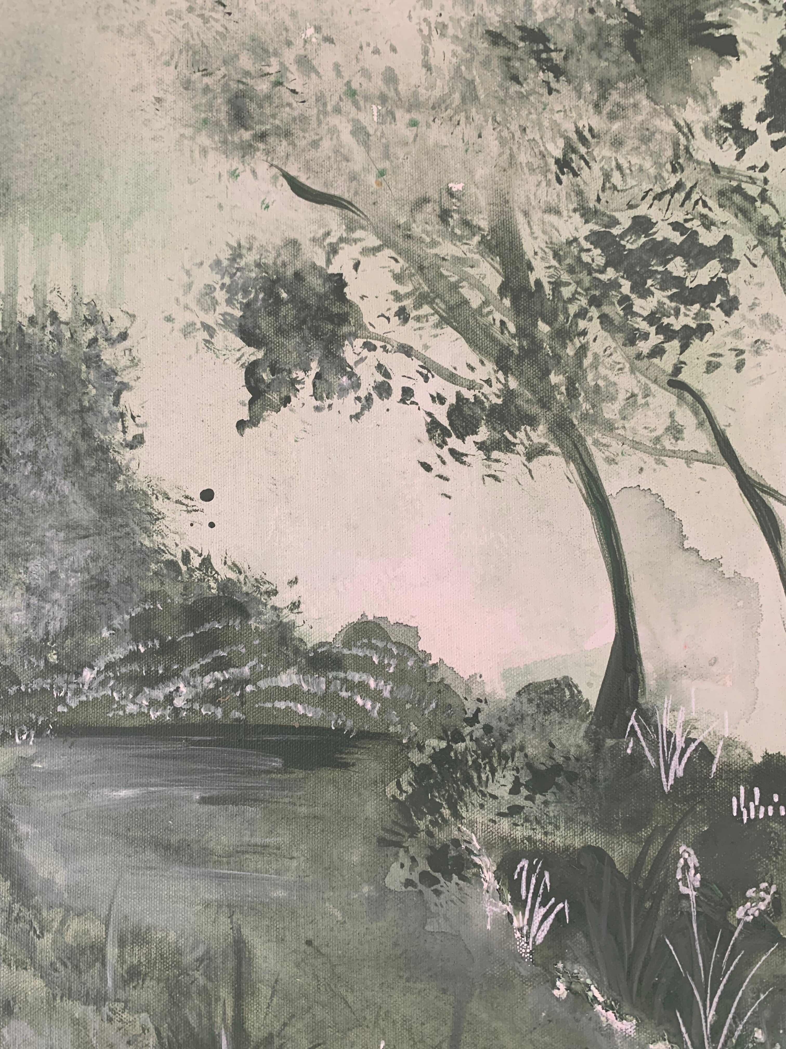 Acrylic and oil on canvas, ready to hang, Signed on the front.