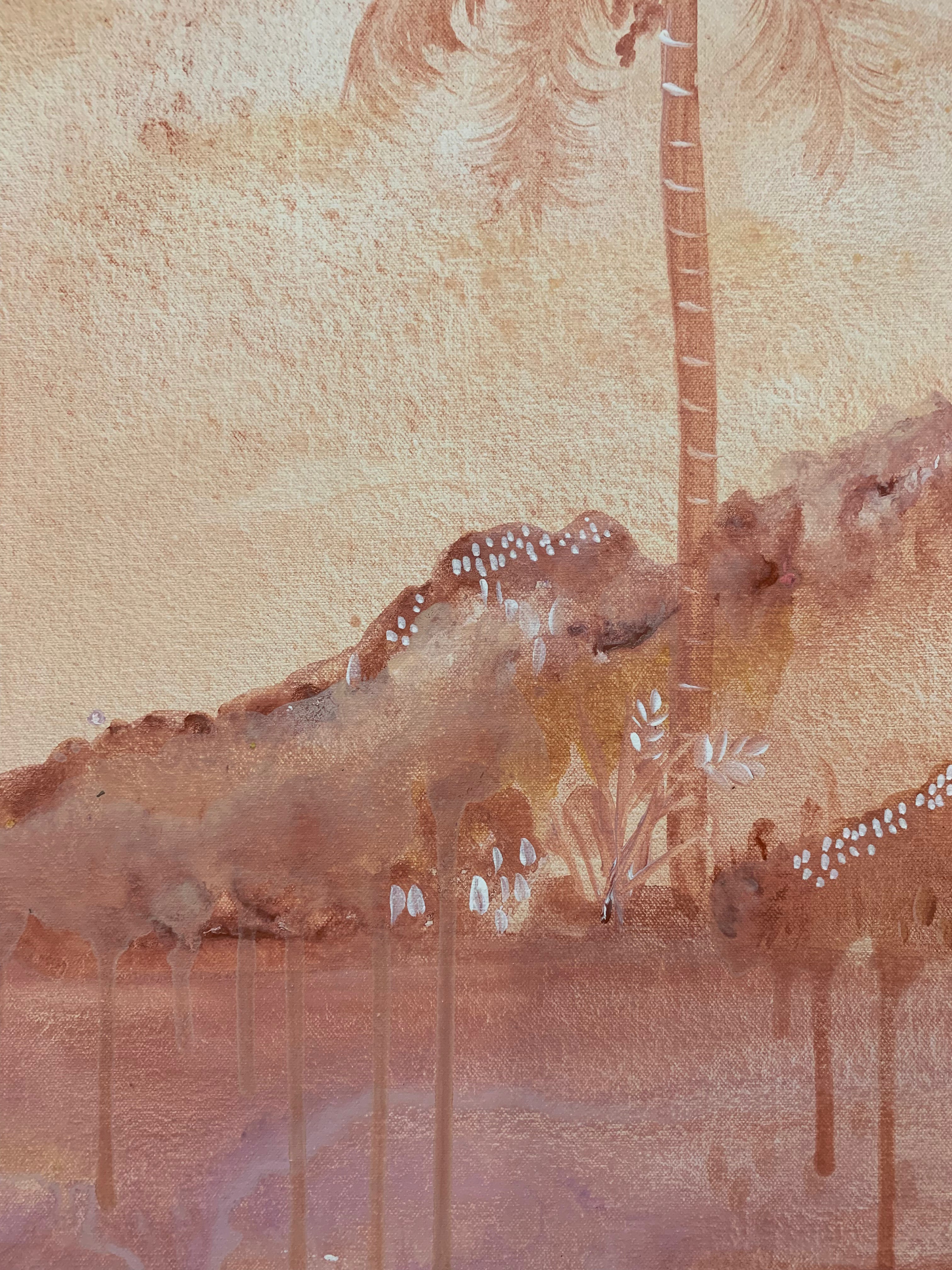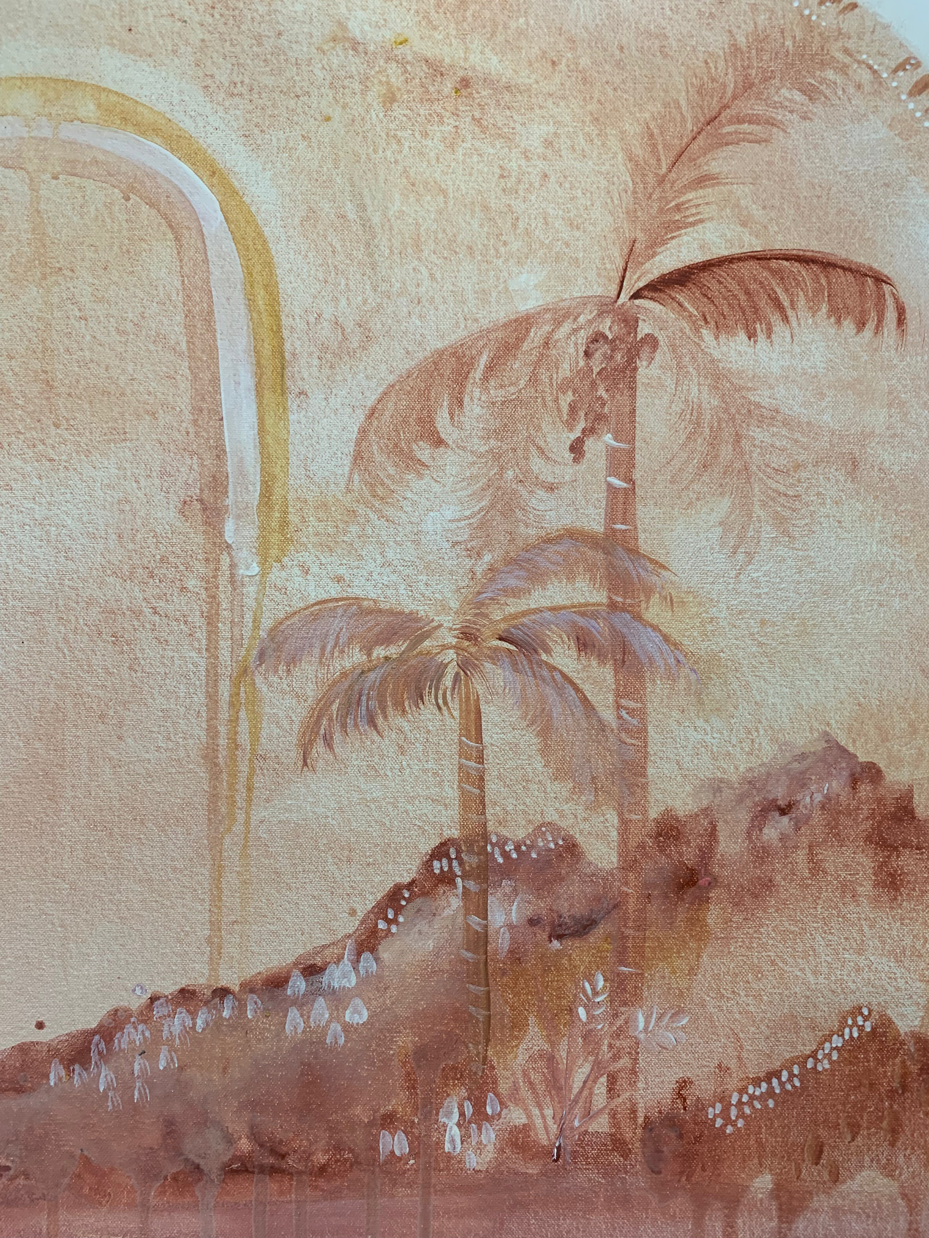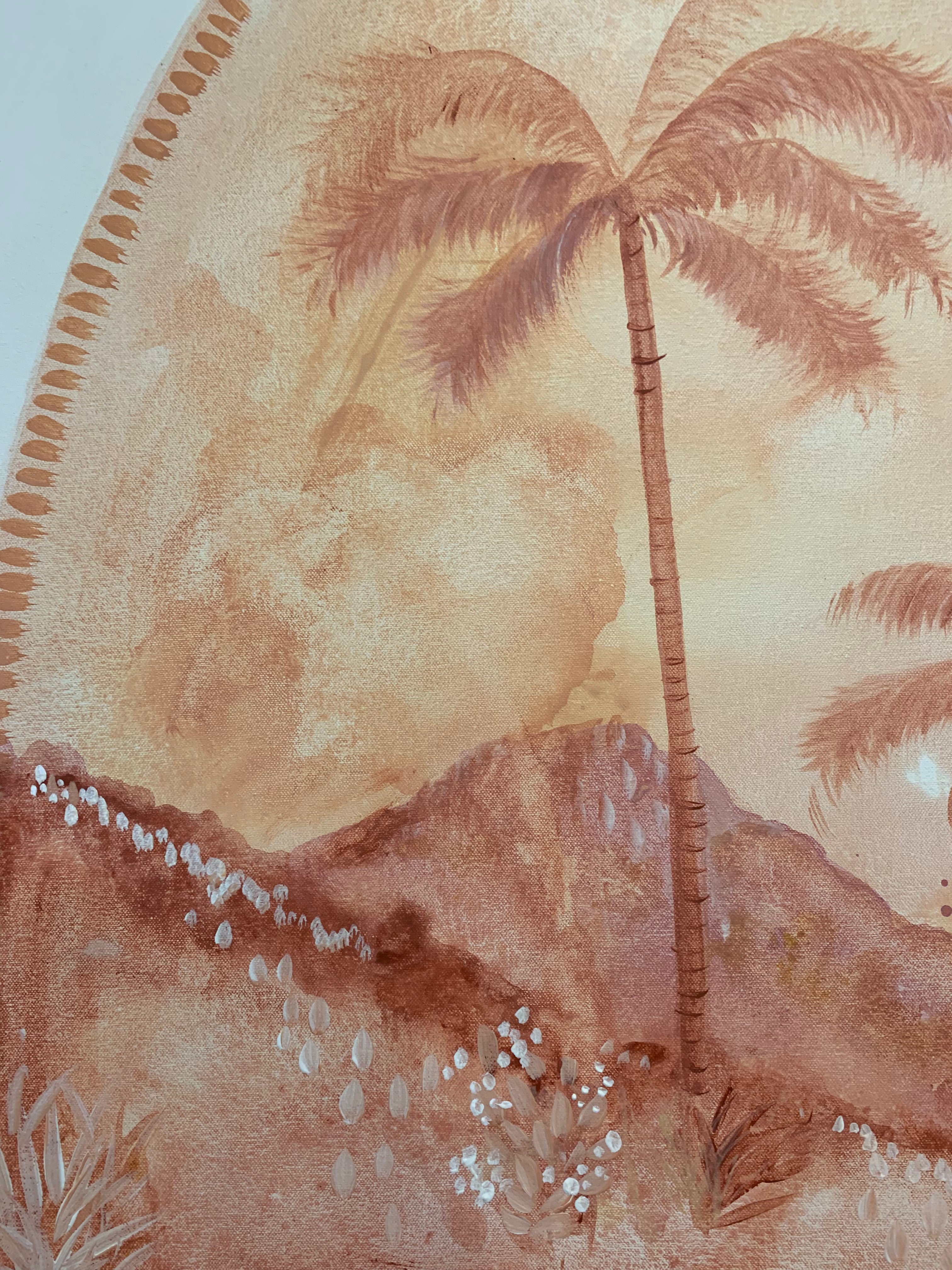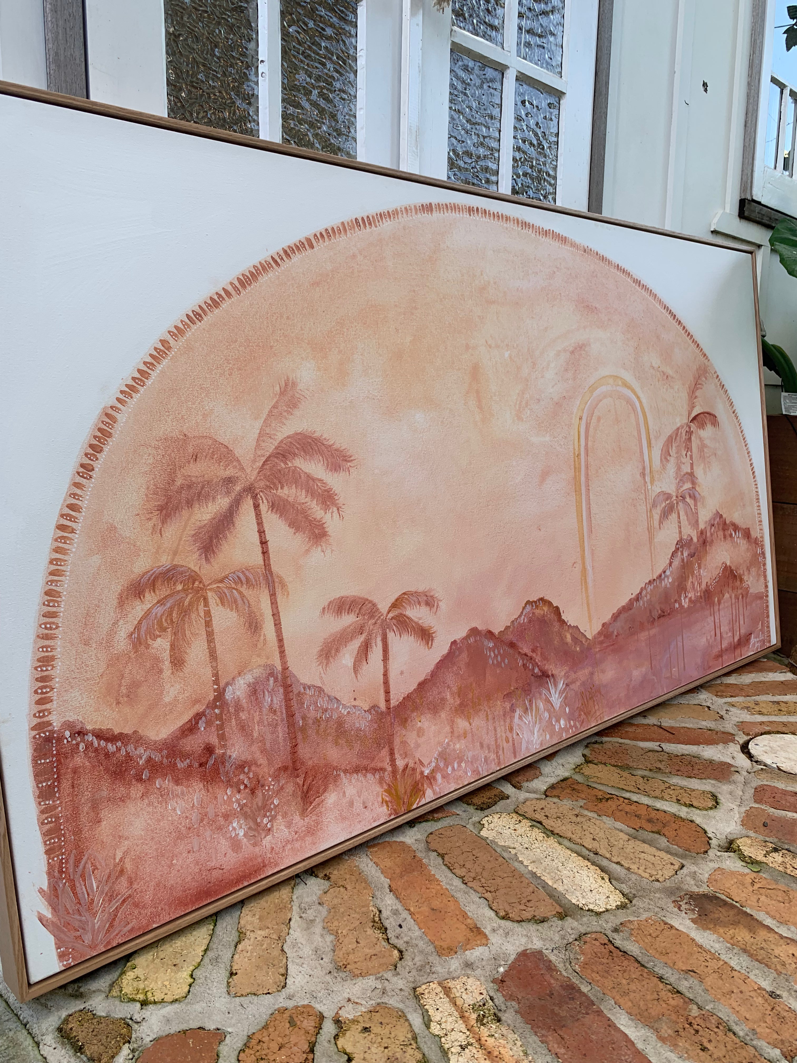 Inspired by the east coast of Australia and the beautiful memories of 'place'. This artwork encapsulates the palm forests found nearby Mt Warning. thousands of years of history that only the trees speak of.