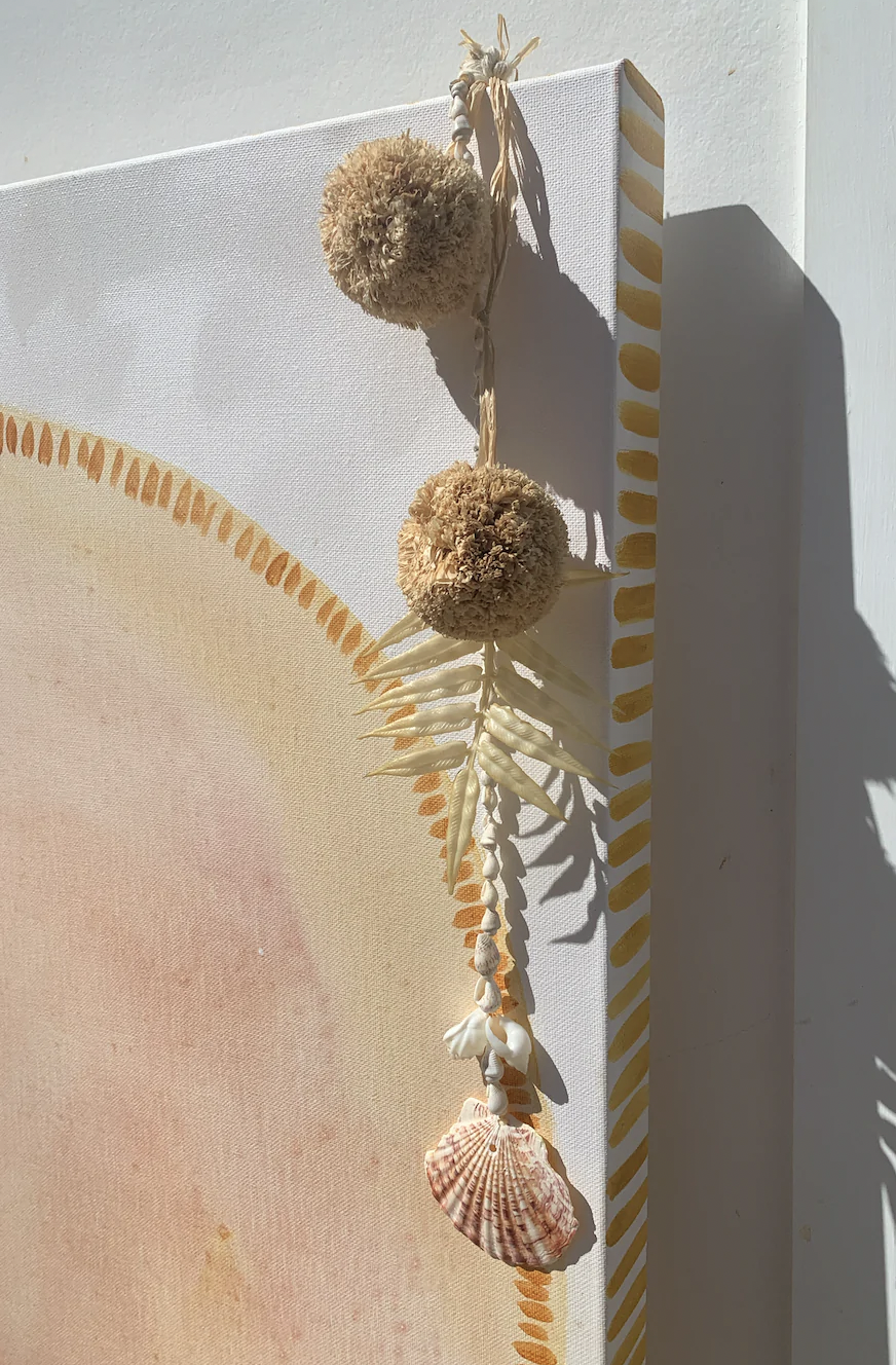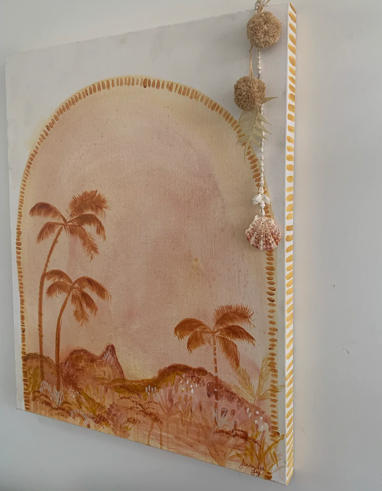 Unframed with details on sides and tassel.