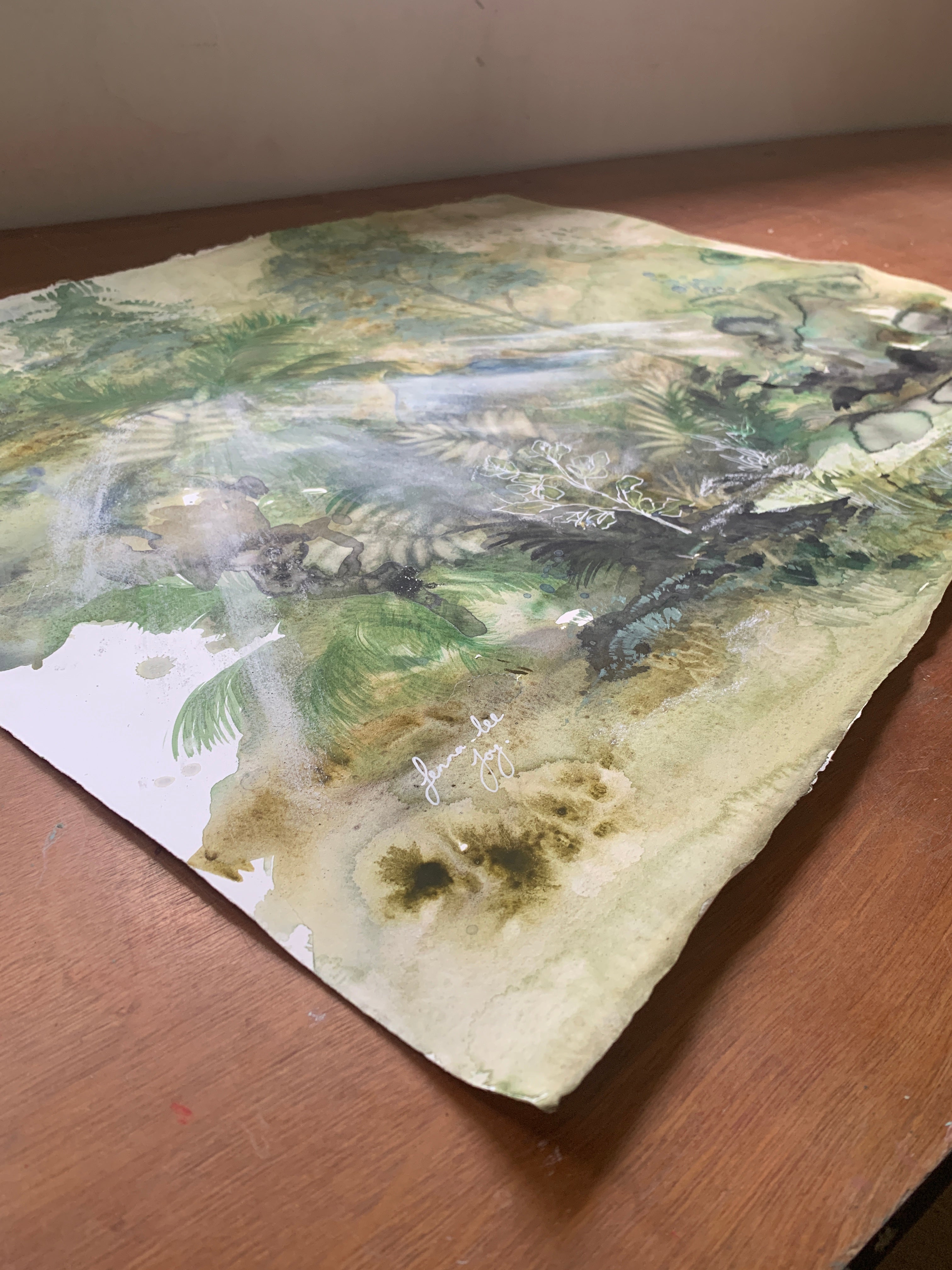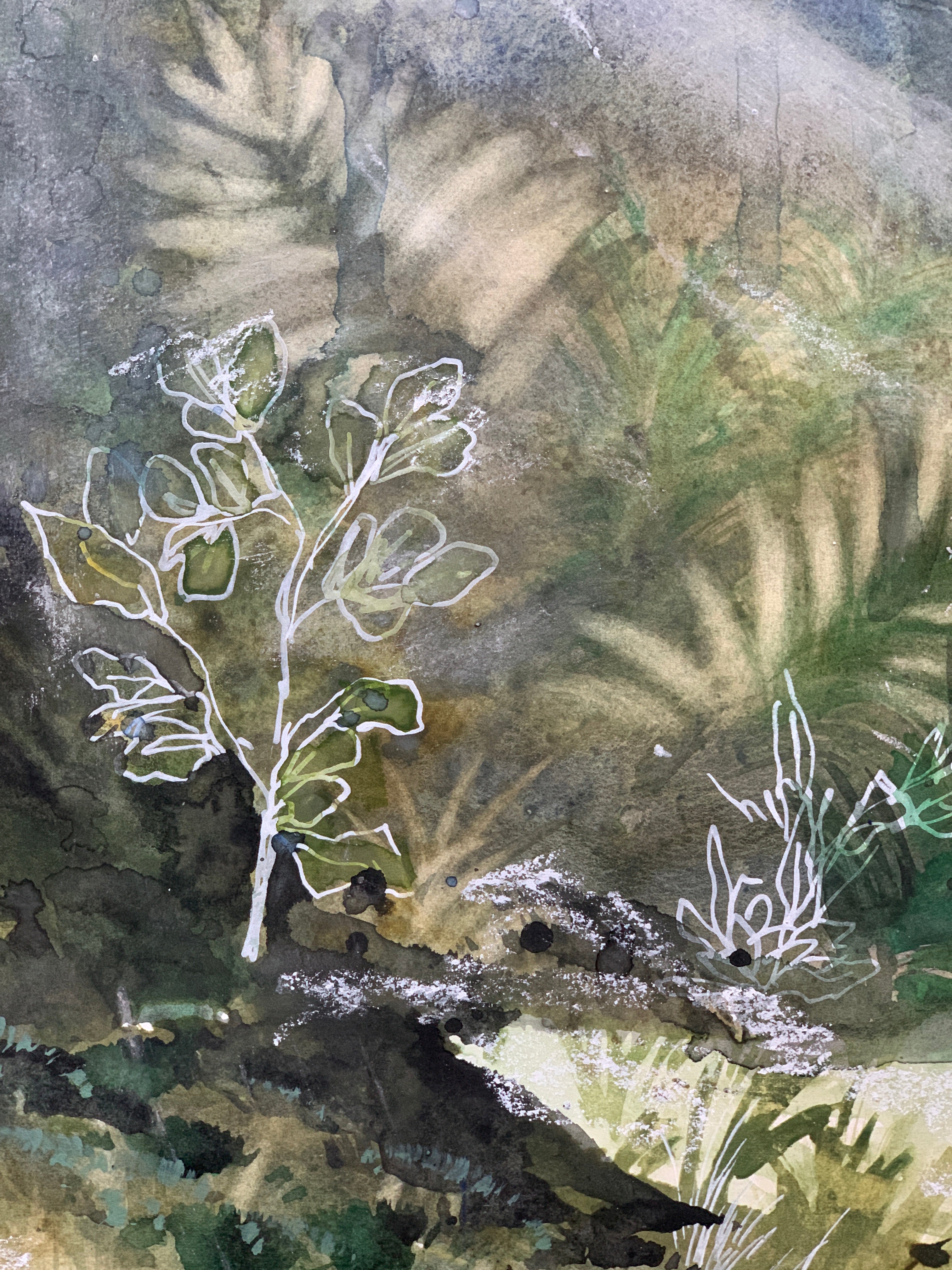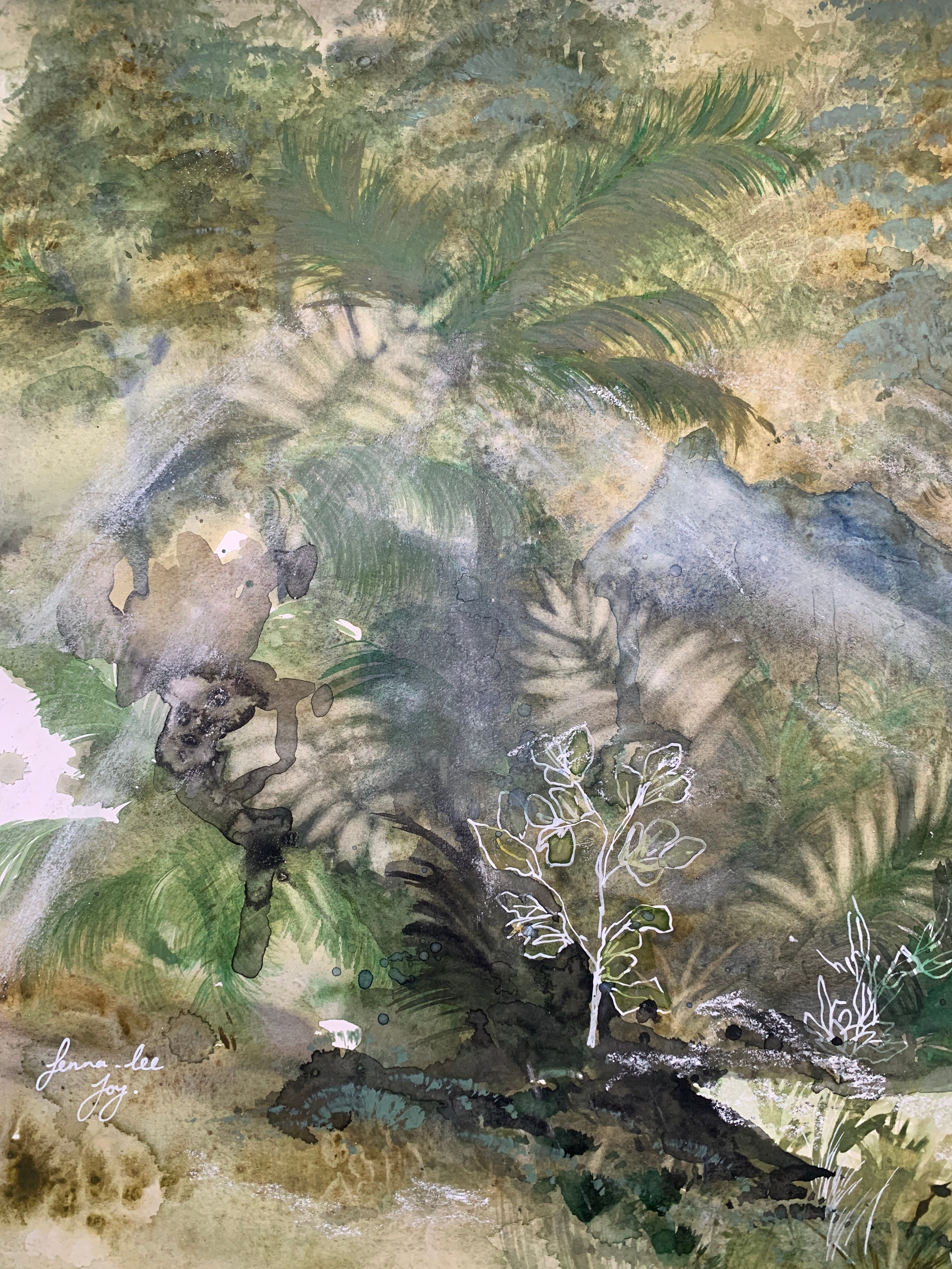 Mountains Ray by Jenna Lee Joy - Inspired by Australian mountains and the beautiful memories of the place. Lush rainforest palms drape the canopy floor creating intricate patterns.