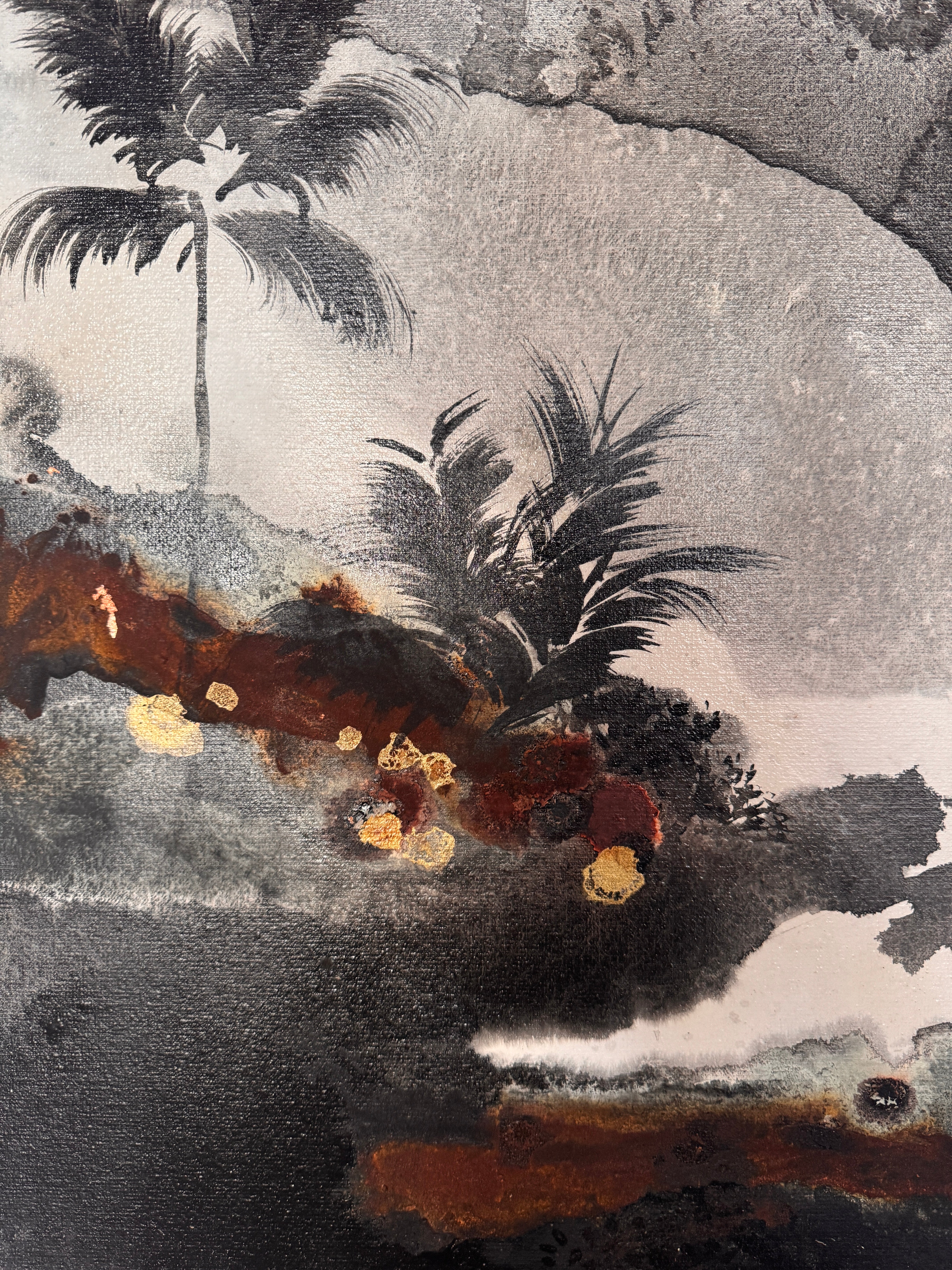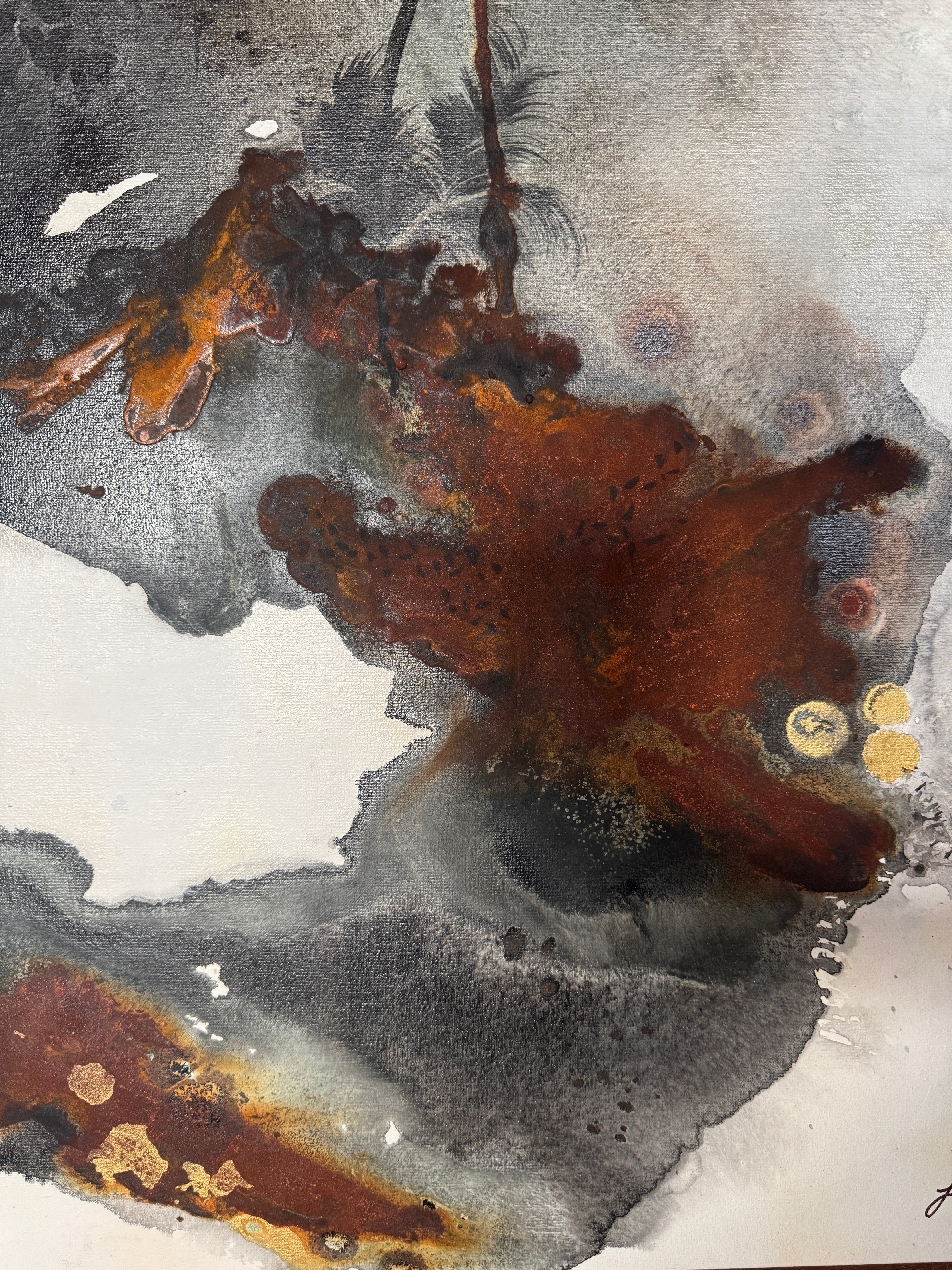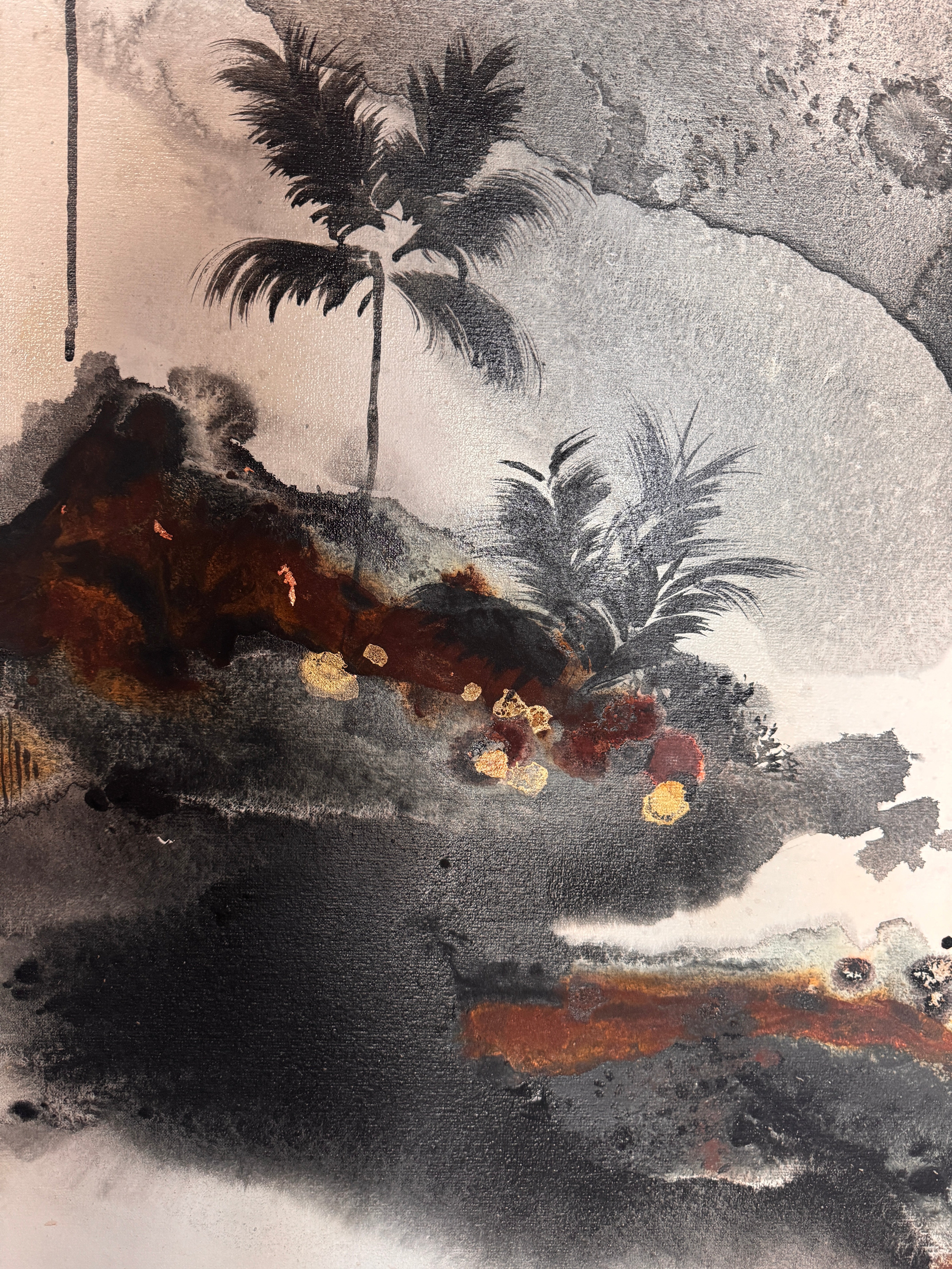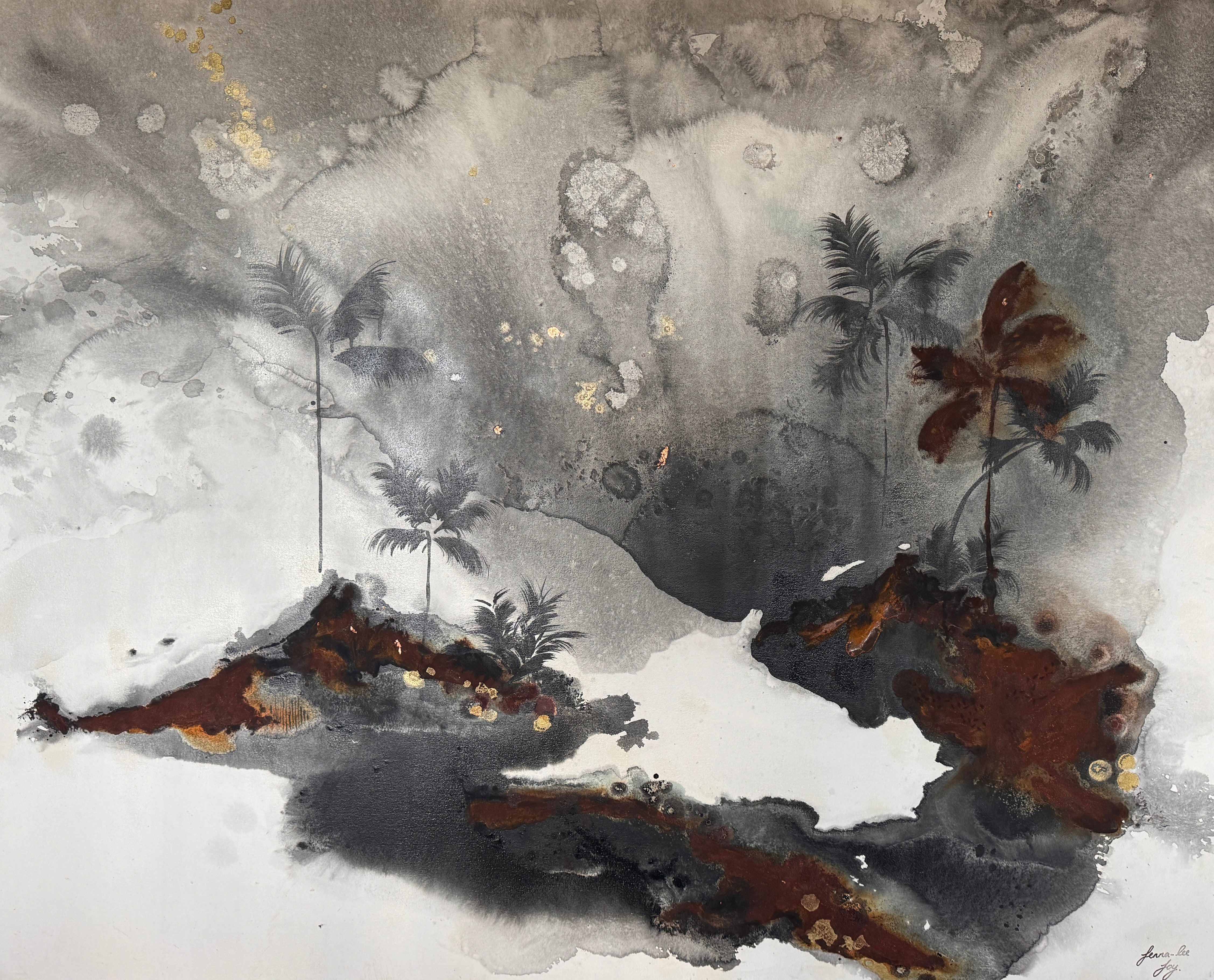 Acrylic and oil on canvas, ready to hang.