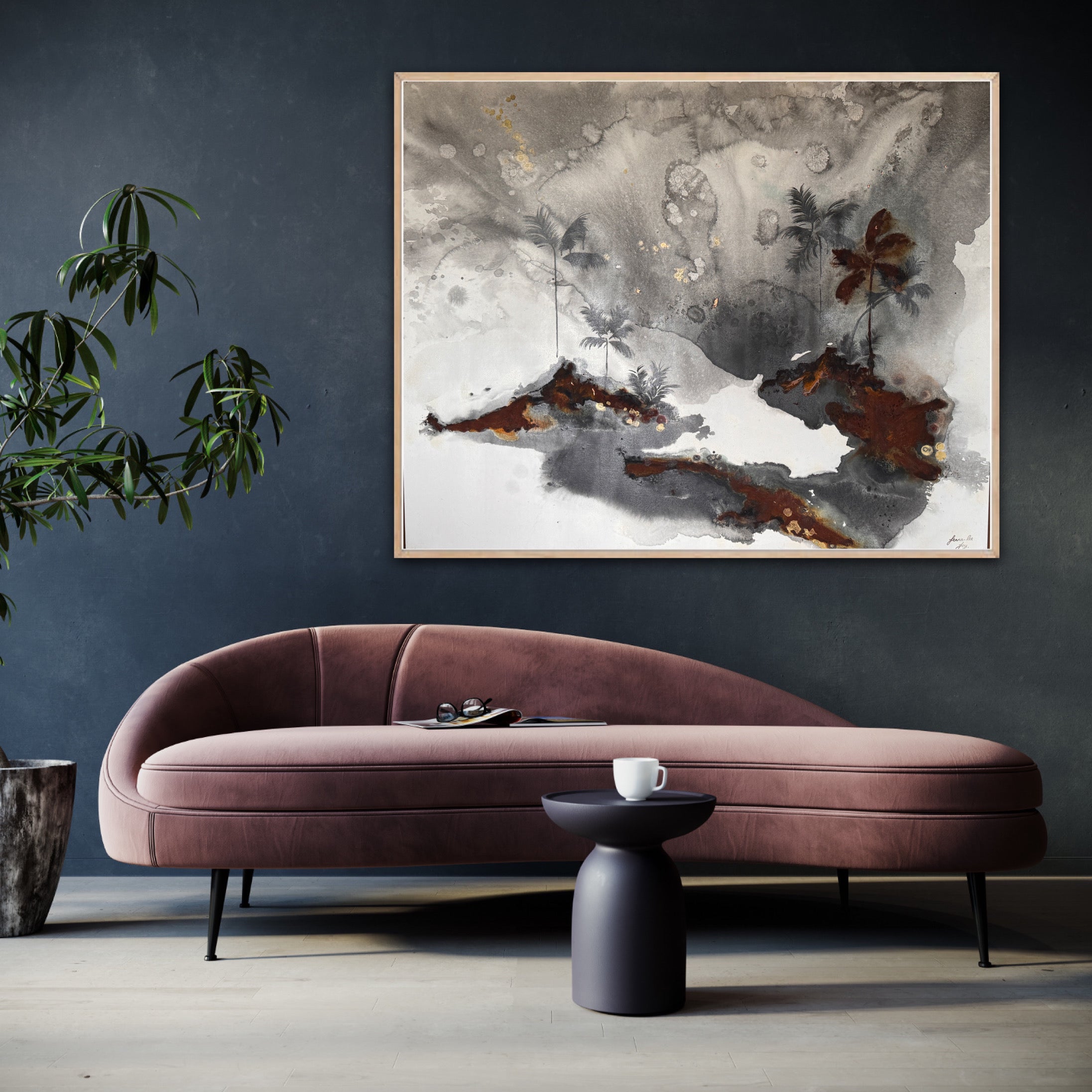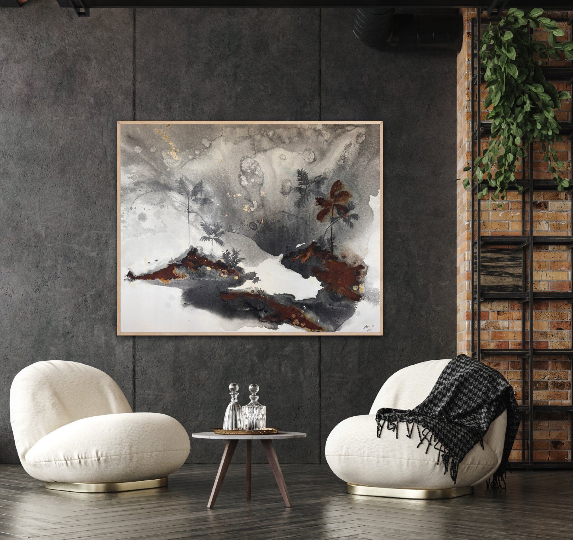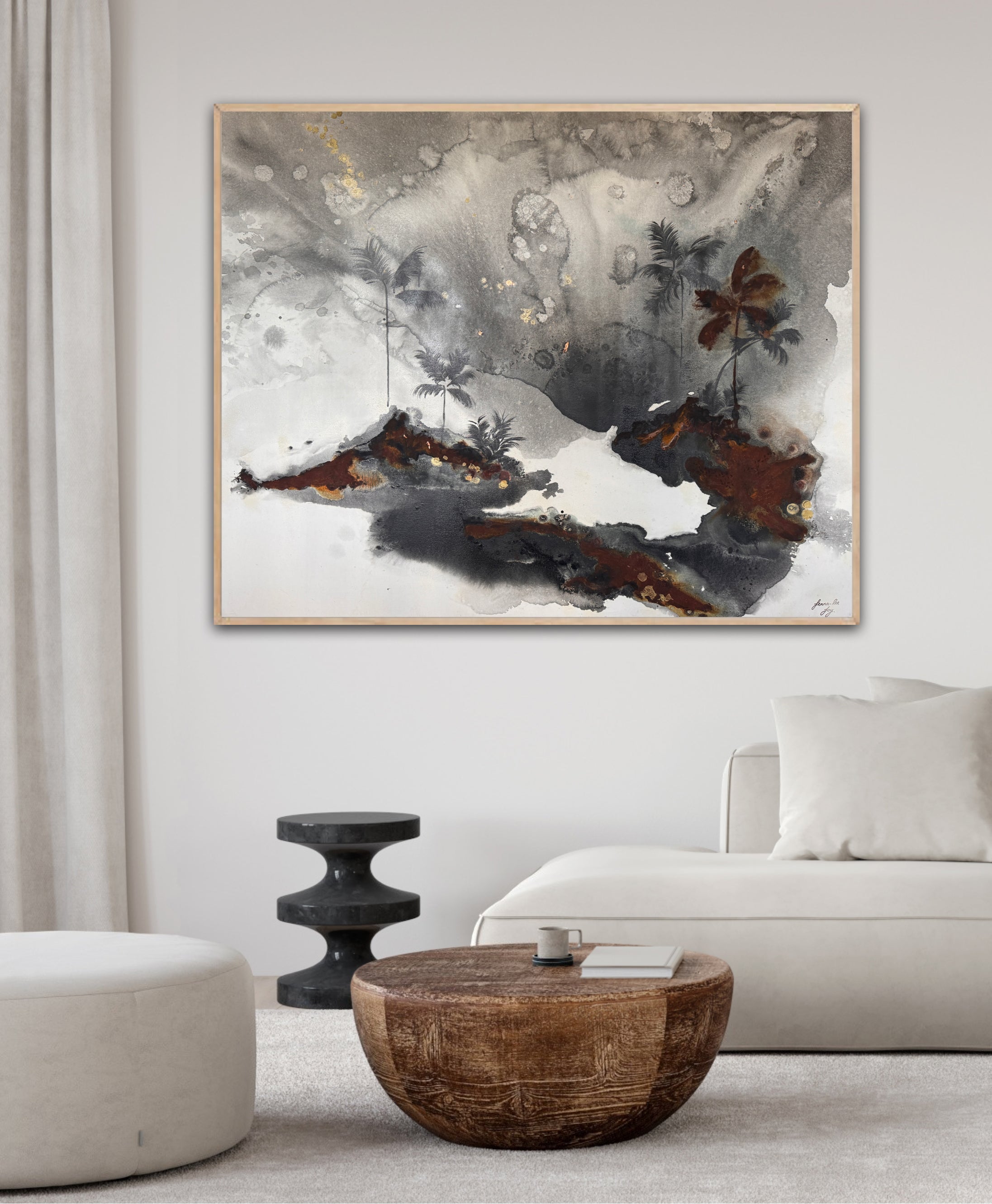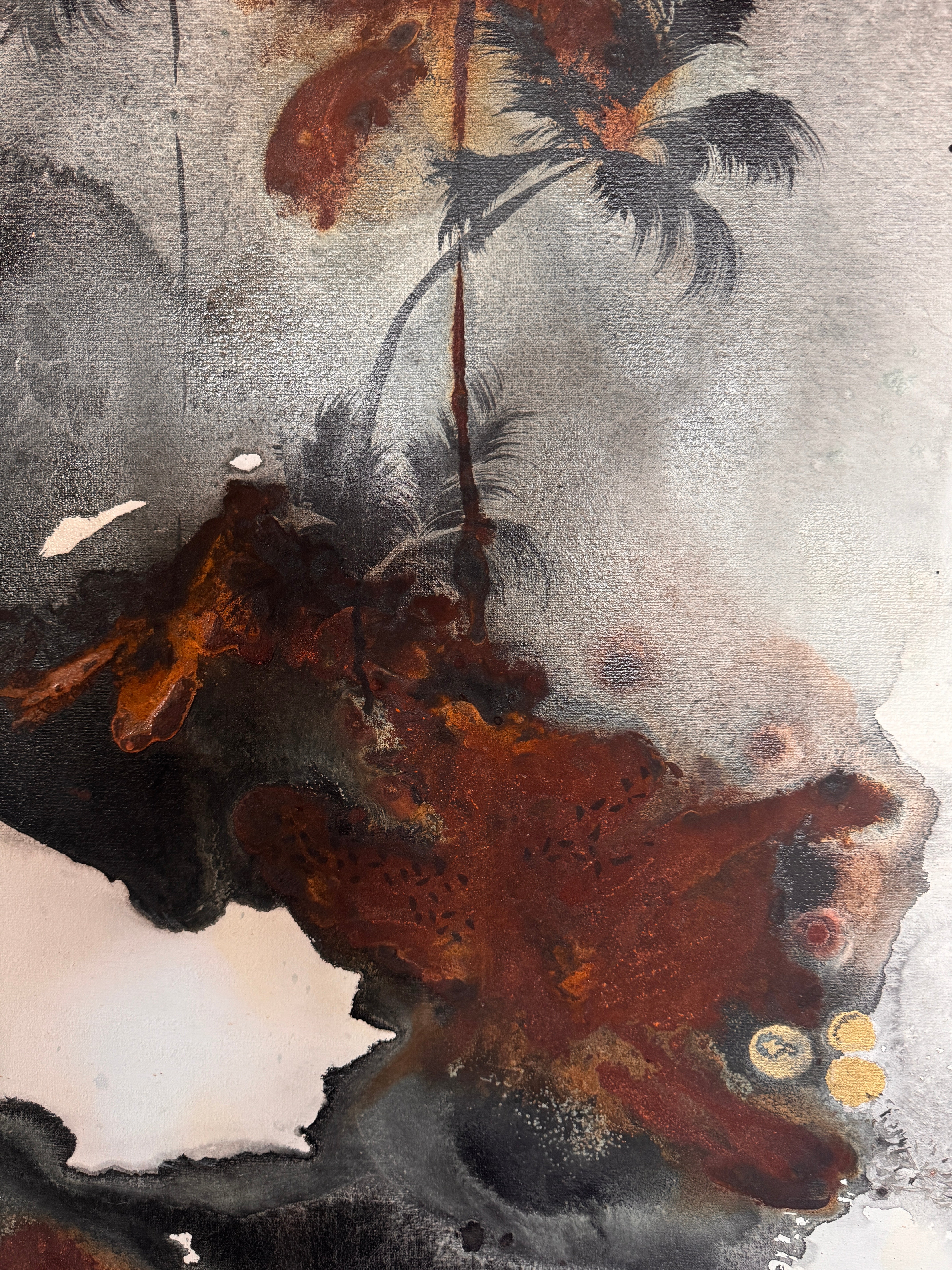 Acrylic and oil on canvas, ready to hang.