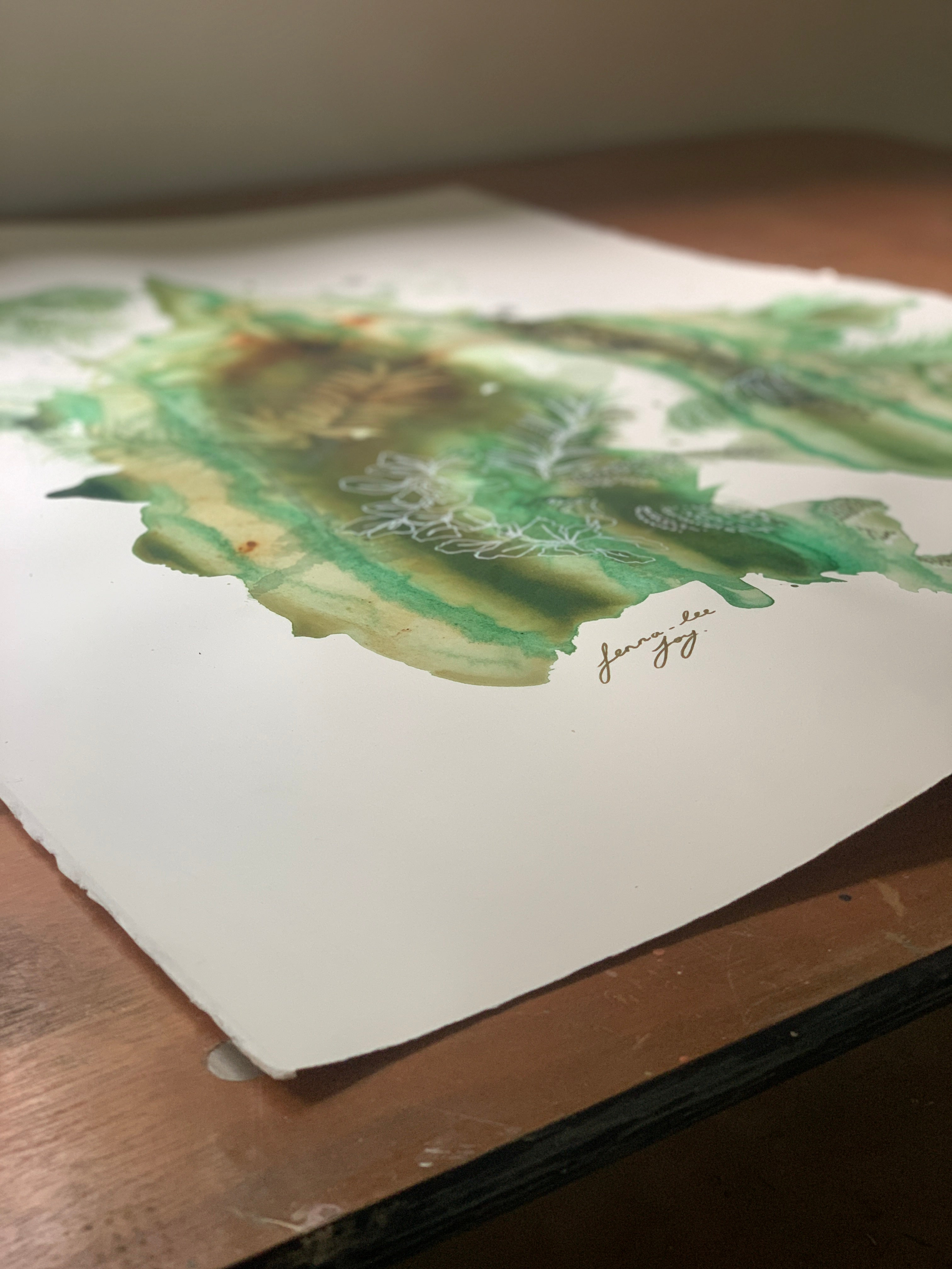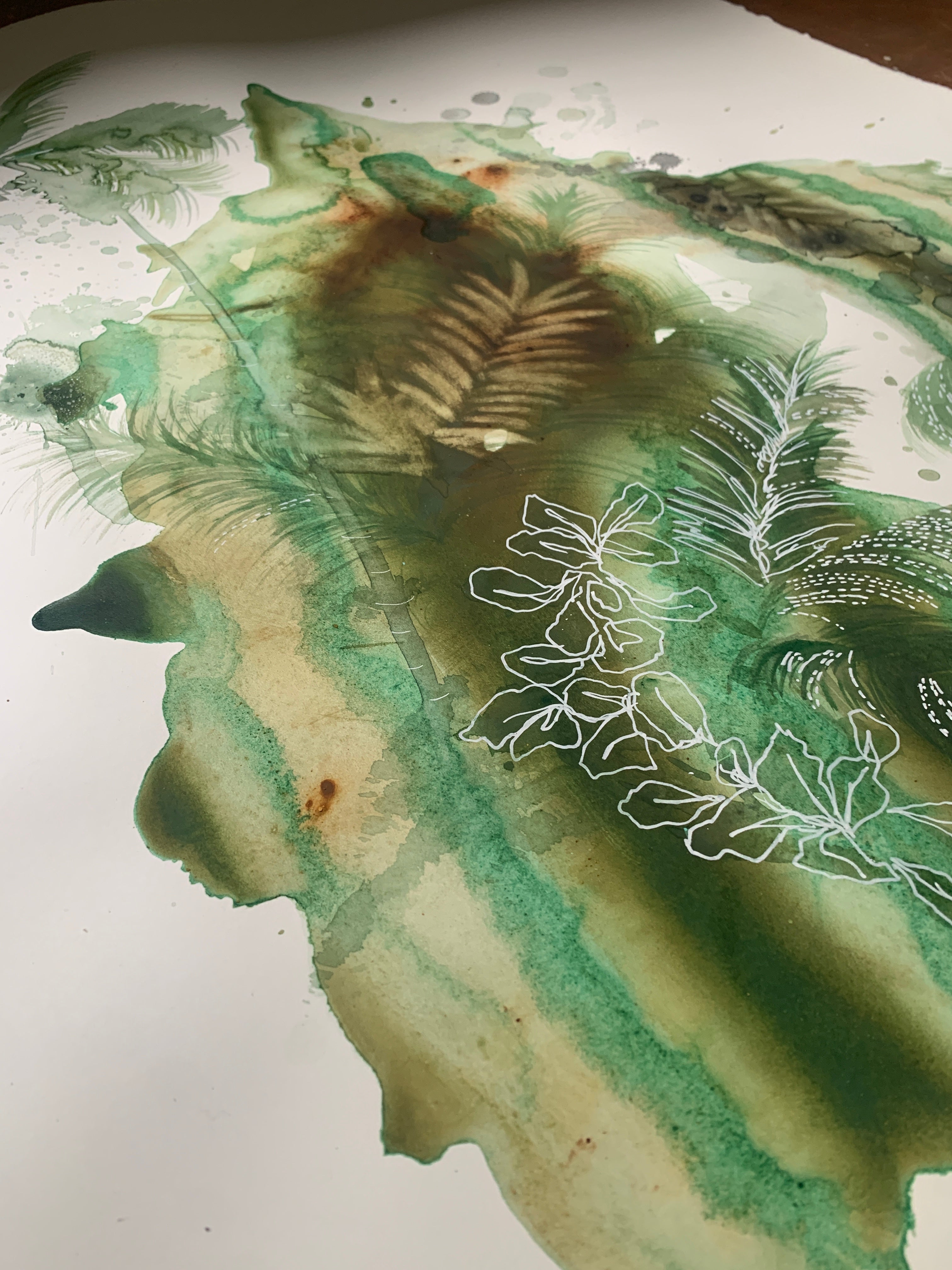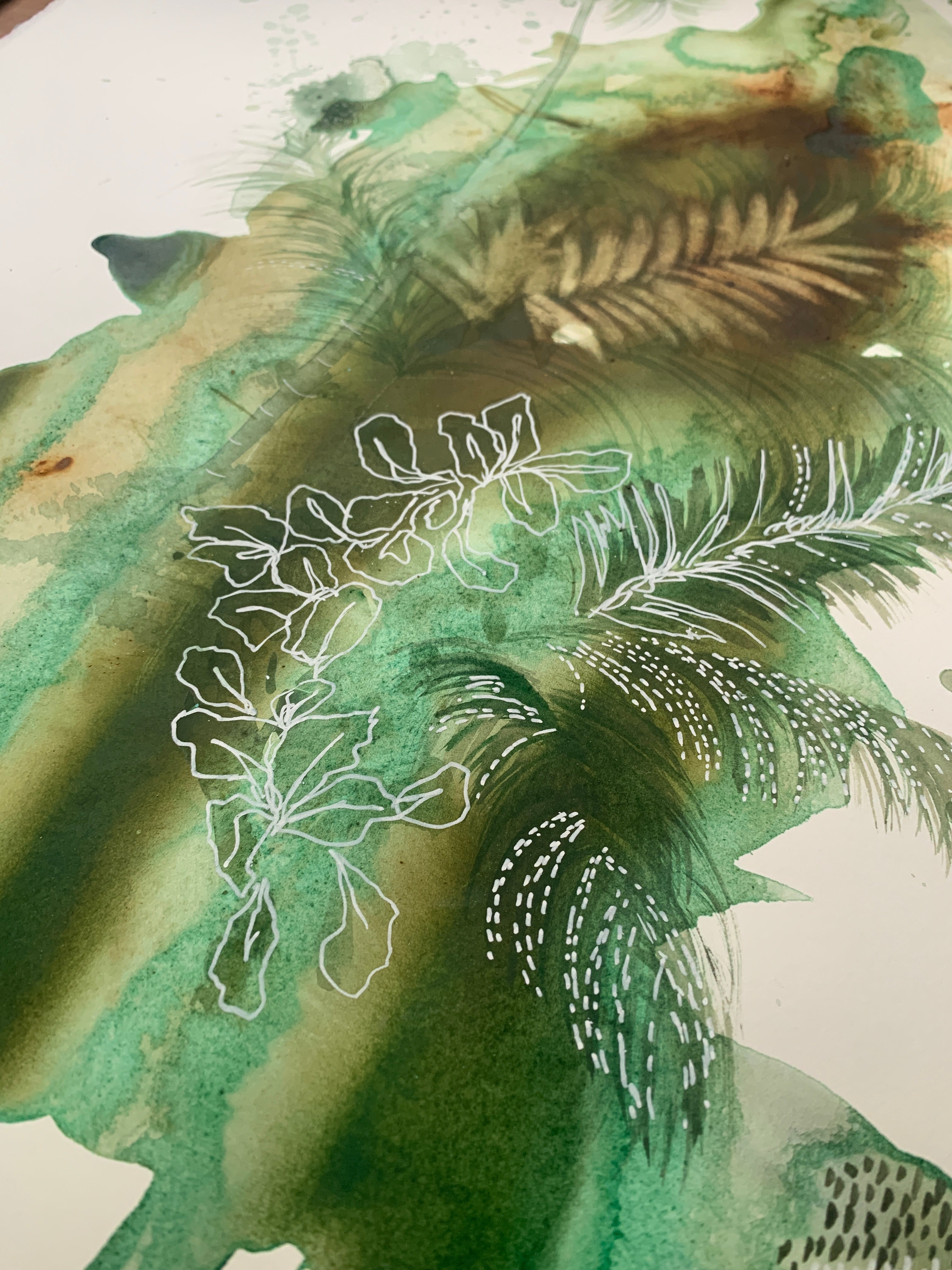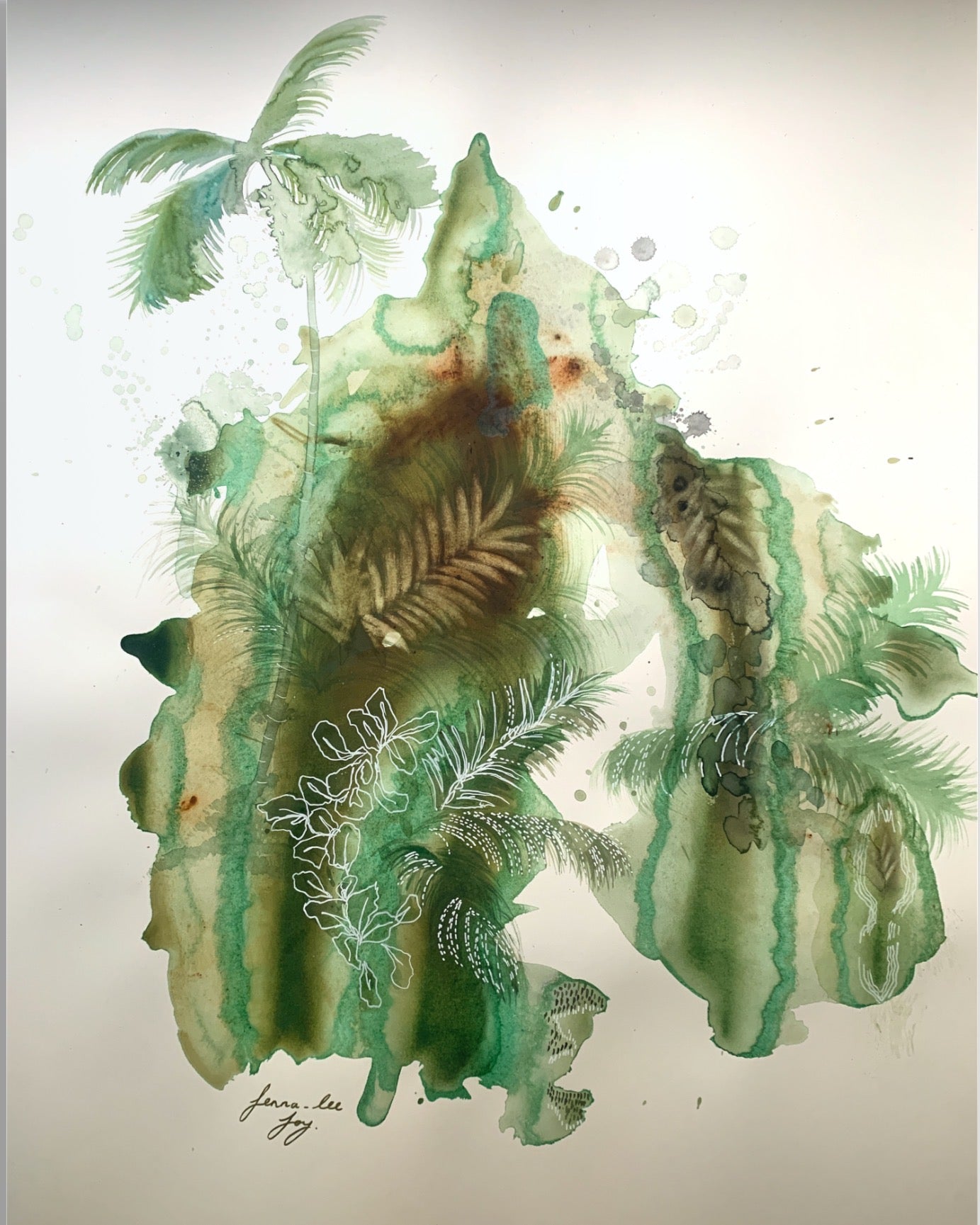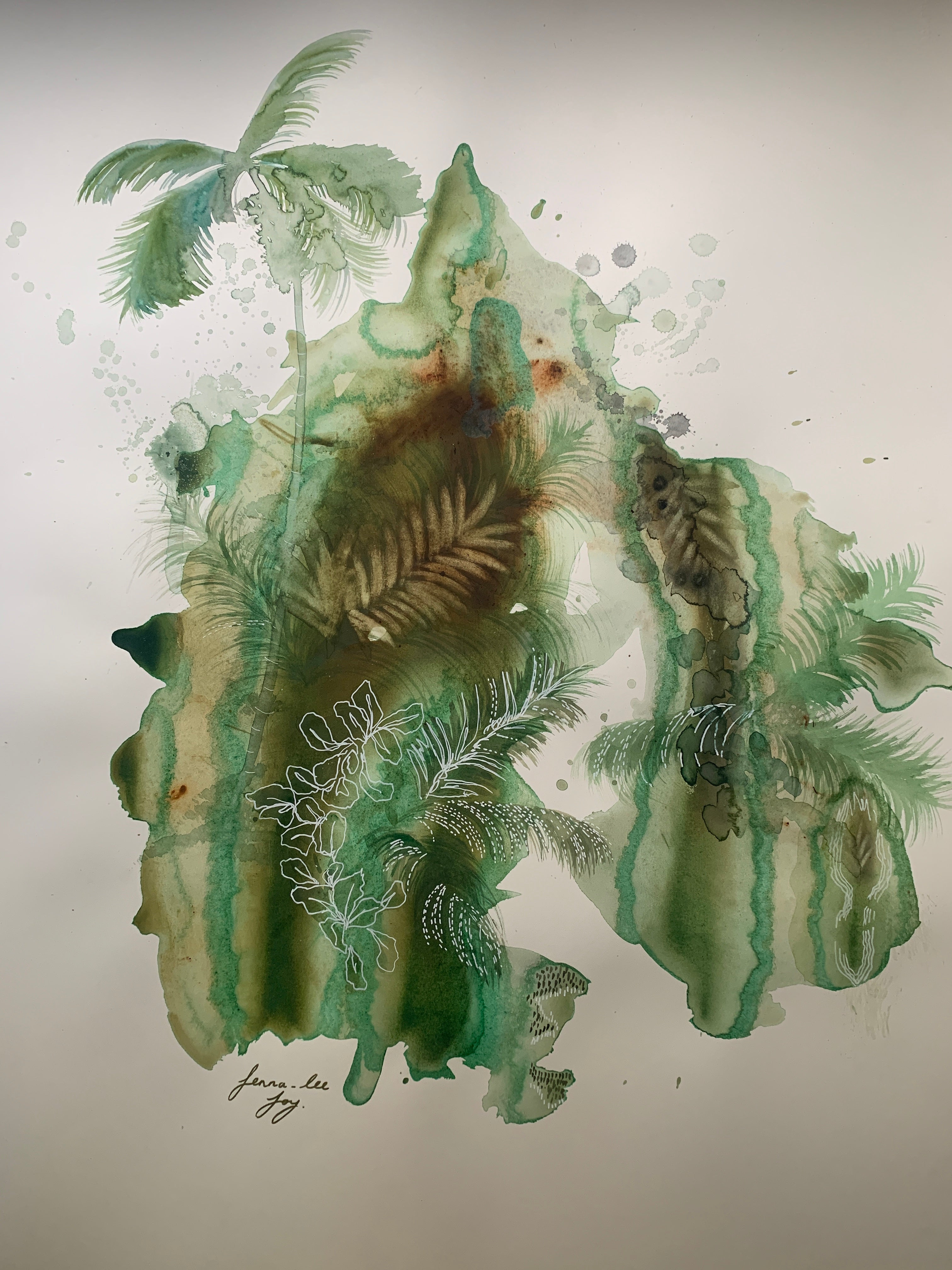 Palm by Jenna Lee Joy - Inspired by the Australian coastal bush, where palms folic the ground. The diversity of forest bathing is explored. A rich euphoric landscape.