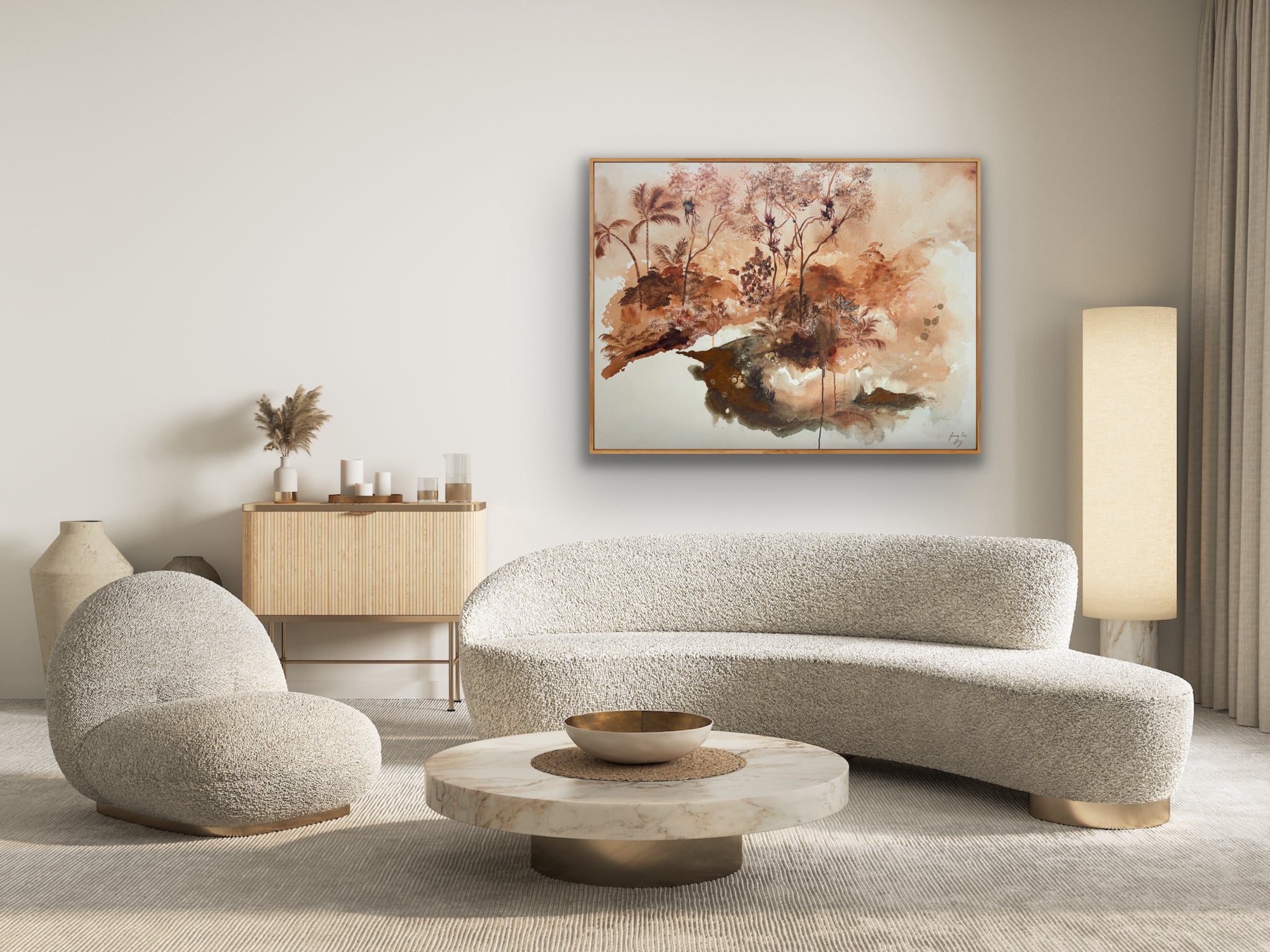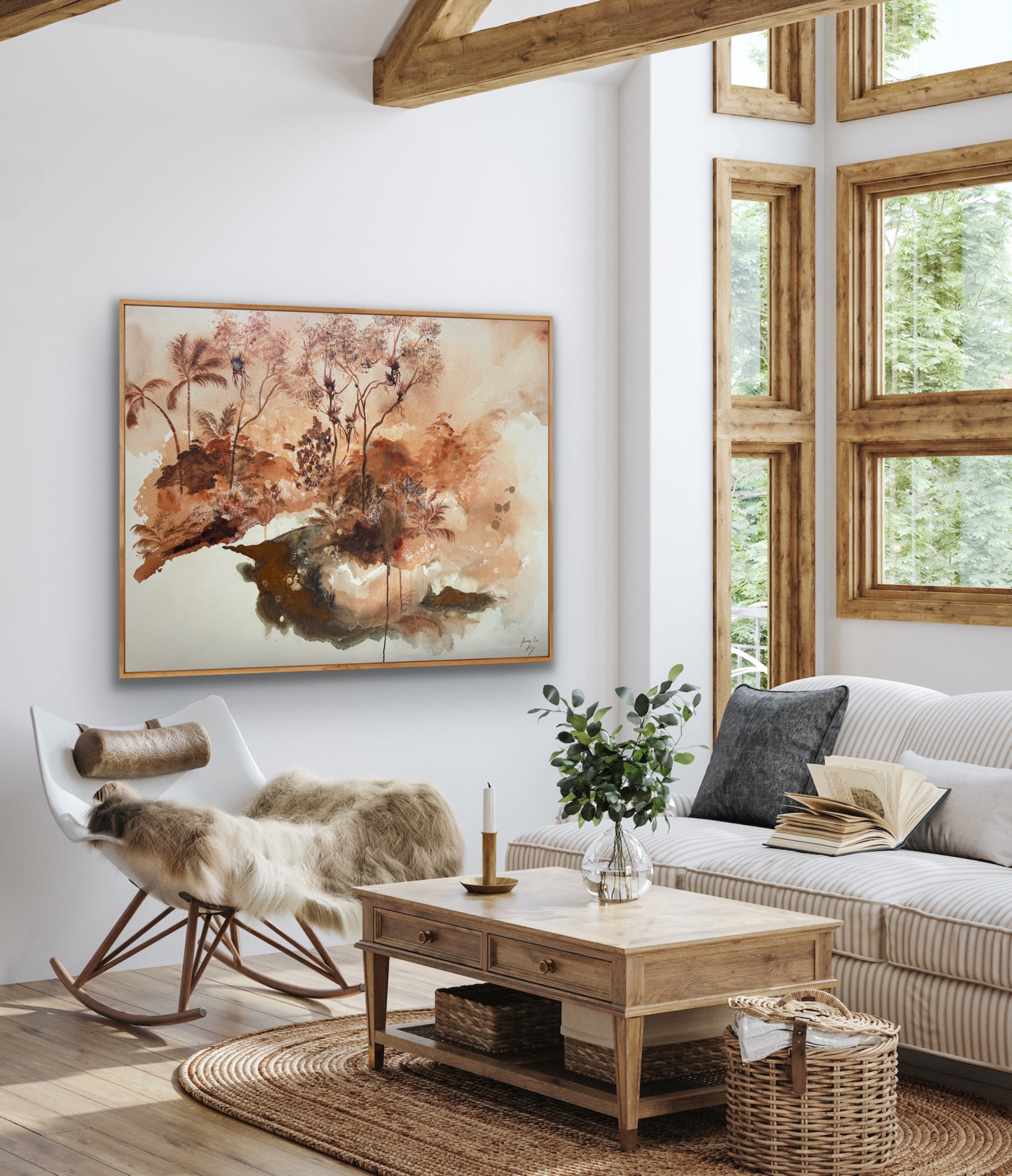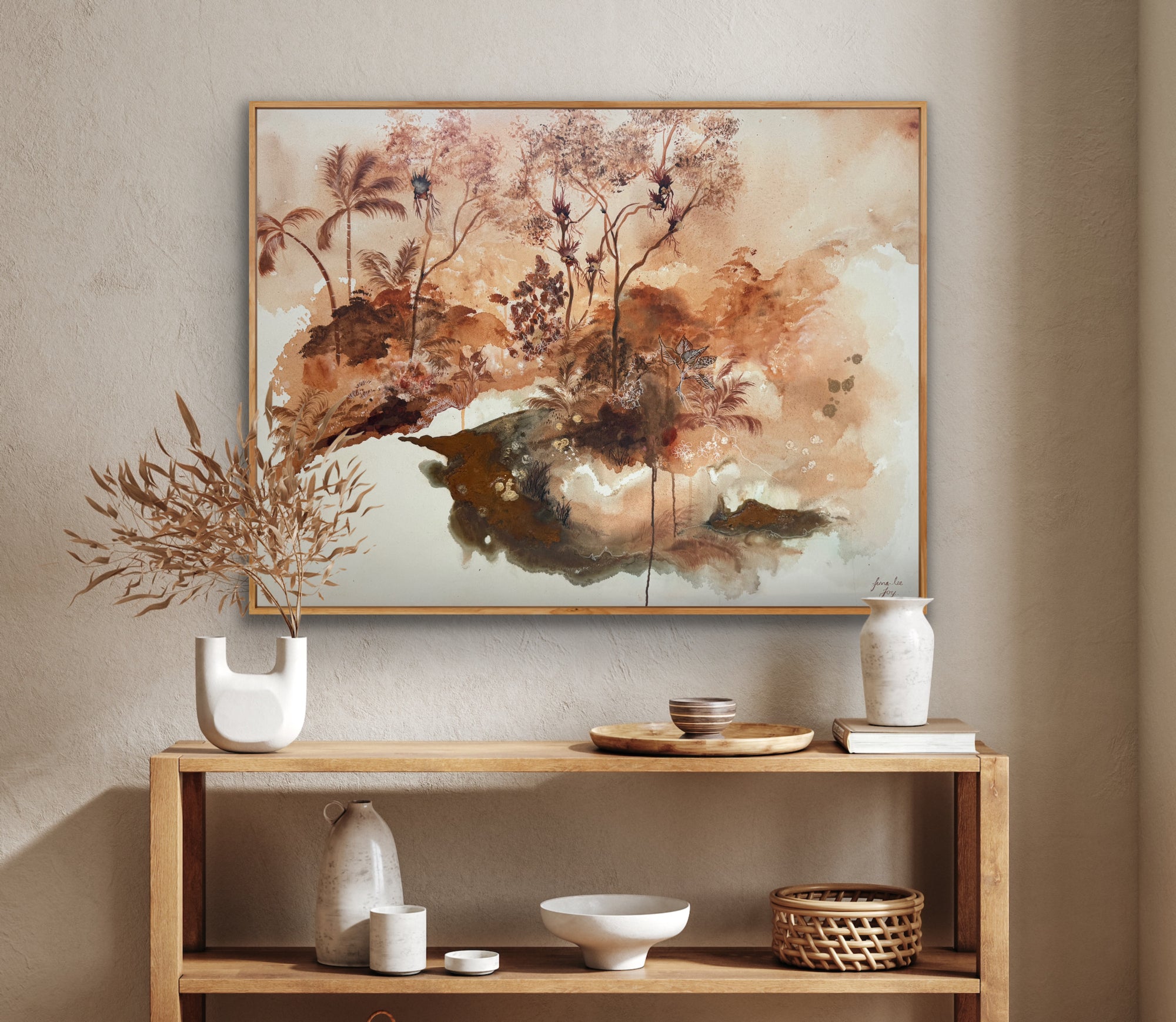 Gallery quality canvas Framed in solid Oak.