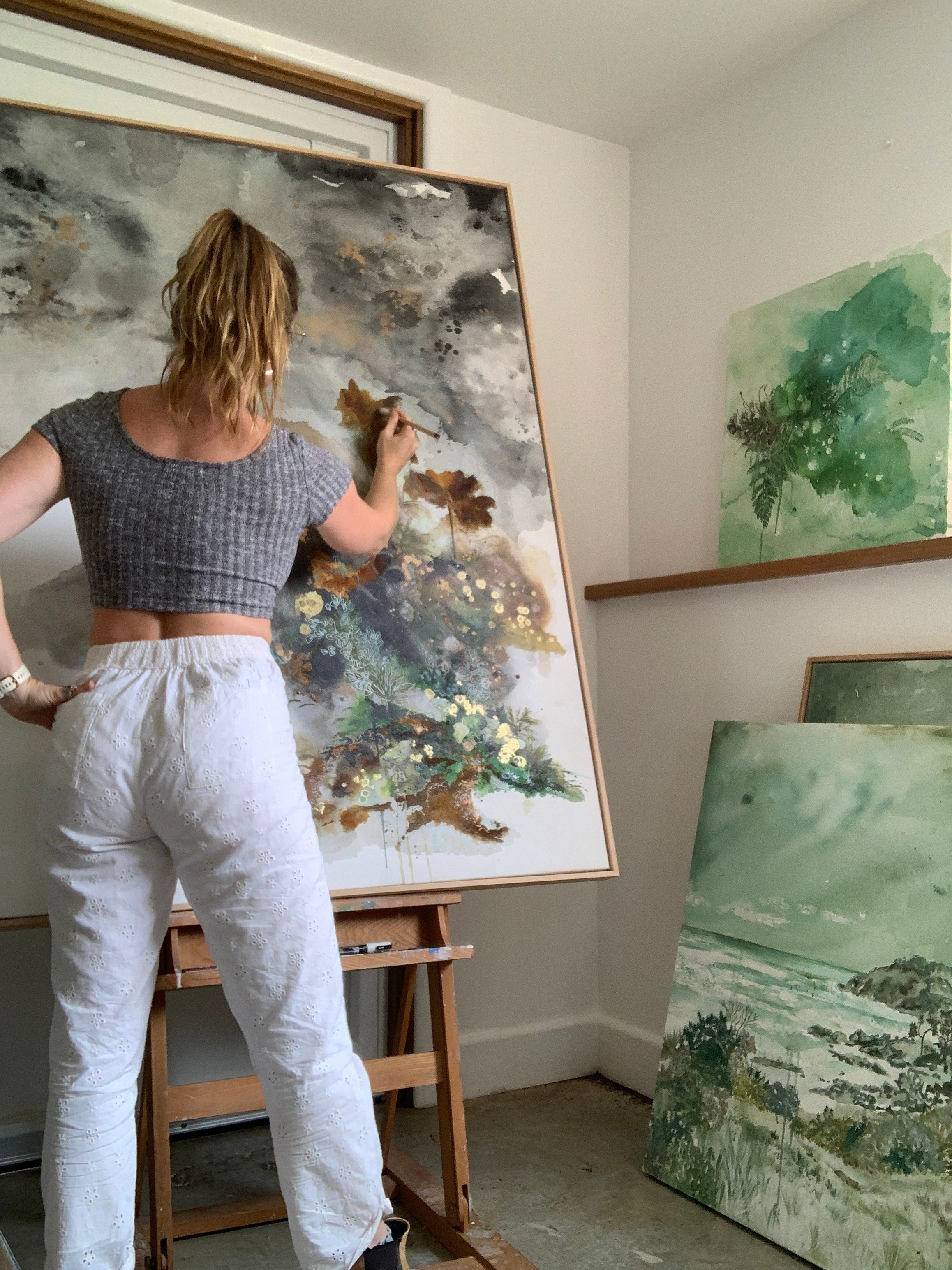 Acrylic and oil on canvas, ready to hang, signed on the front.