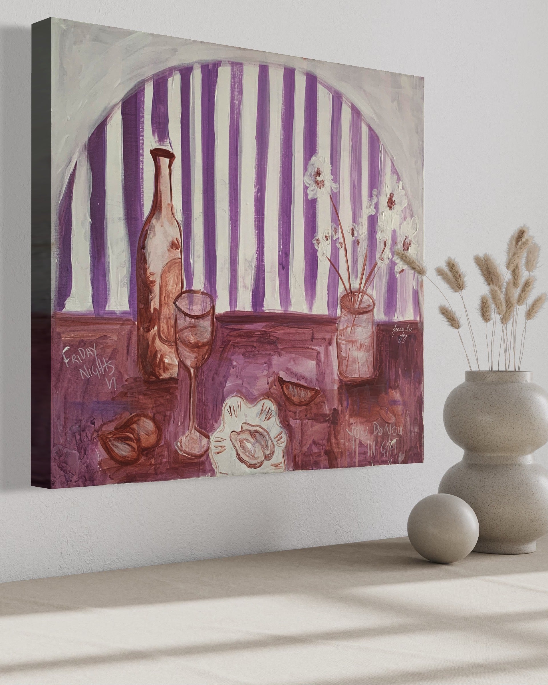 This still life embraces you, your time and taking the time to be you. It encapsulates everyday objects and brings a new perspective to them. Made us of all of the things you'd love to spend the night in with.